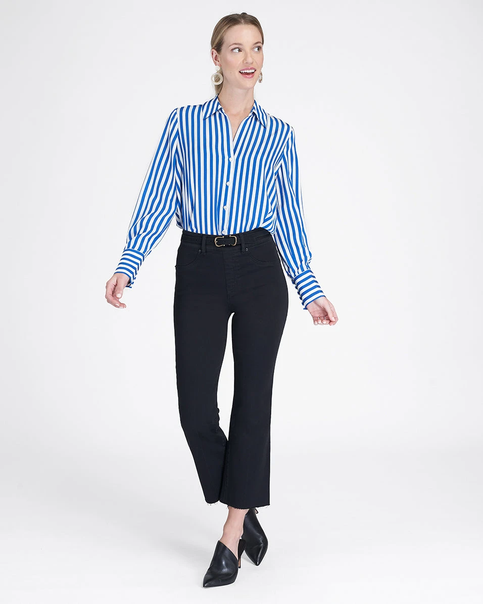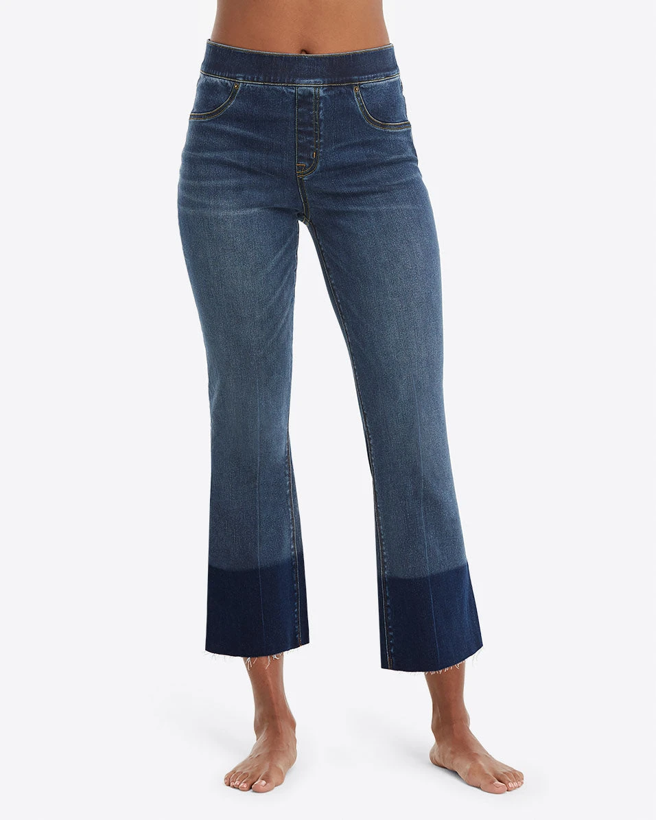 Take your denim to the next level and dare to flare! Our cropped flared denim is a “jean come true.” Made with four-way stretch denim and featuring no-show Gut Check™ technology, this style smooths your tummy, firms your rear, and guarantees compliments.