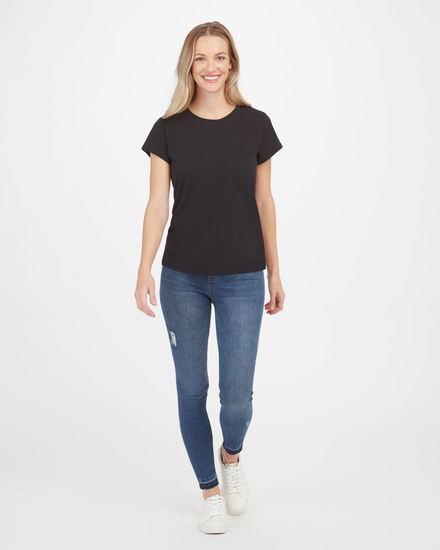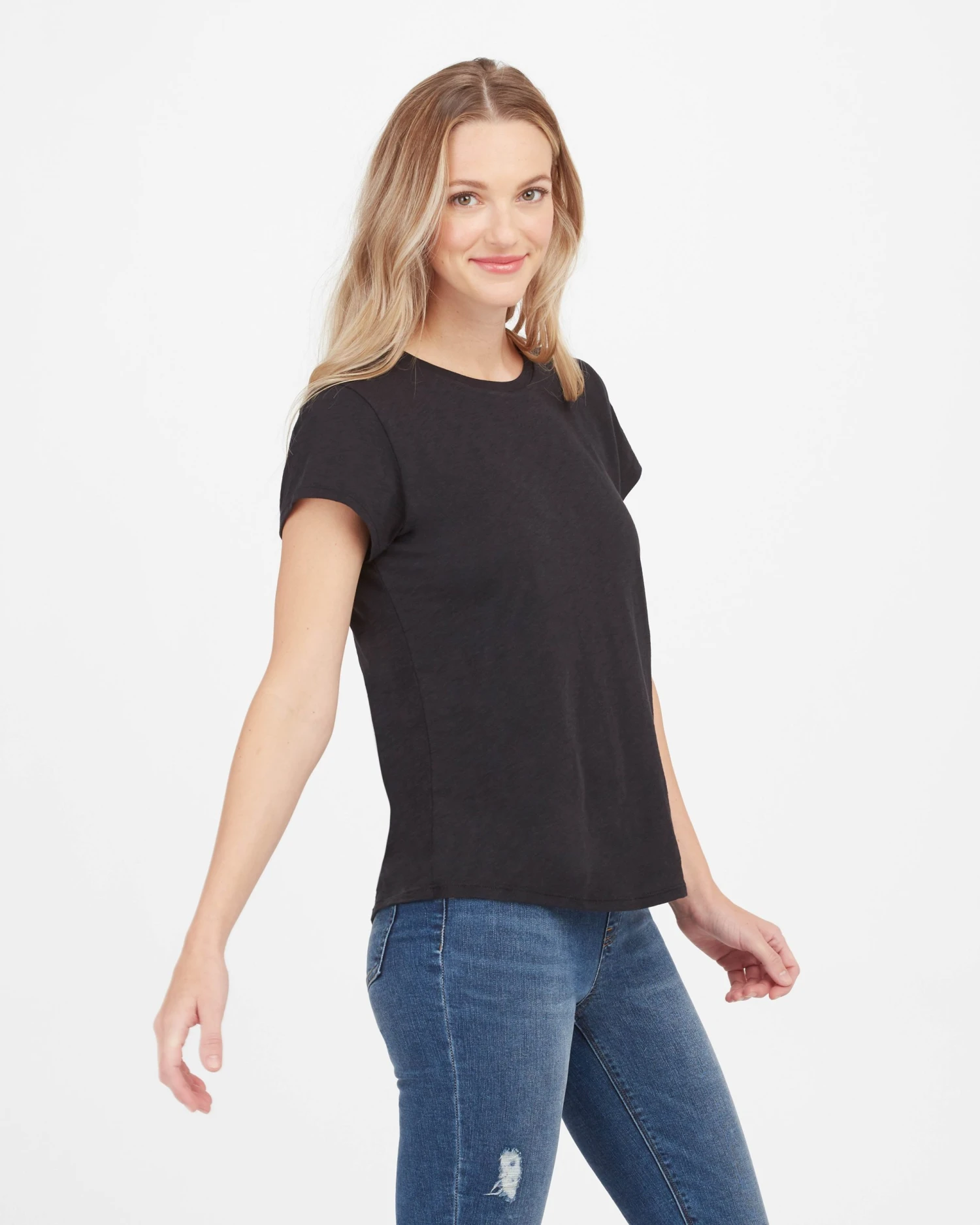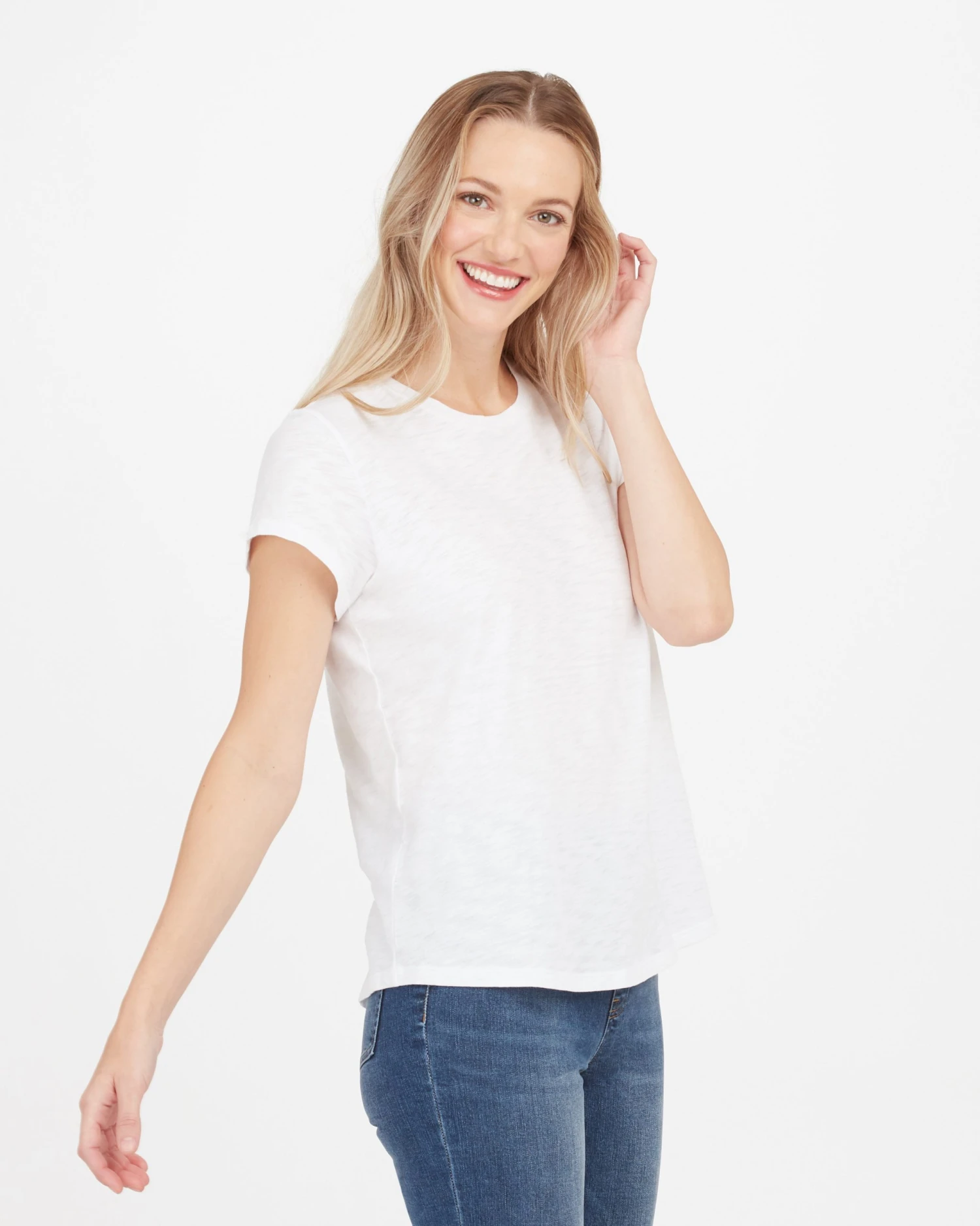 Meet your new everyday essential! This must-have tee is made from our founder Sara Blakely’s favorite fabric—it’s textured, lightweight, and so soft …you won’t want to take it off.